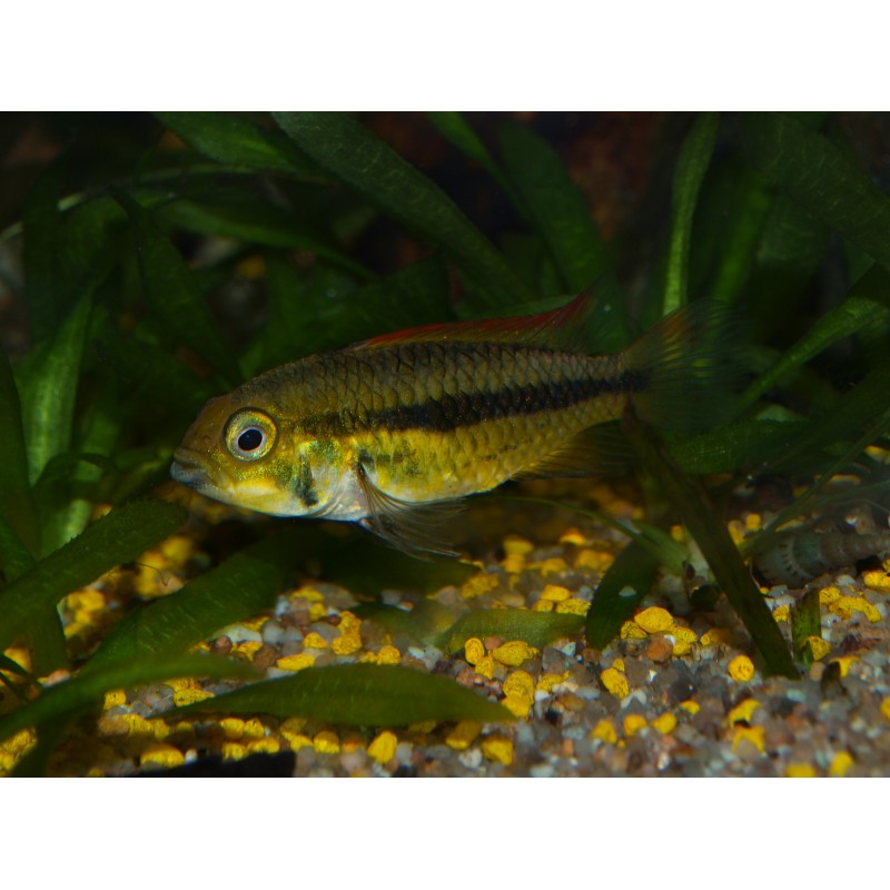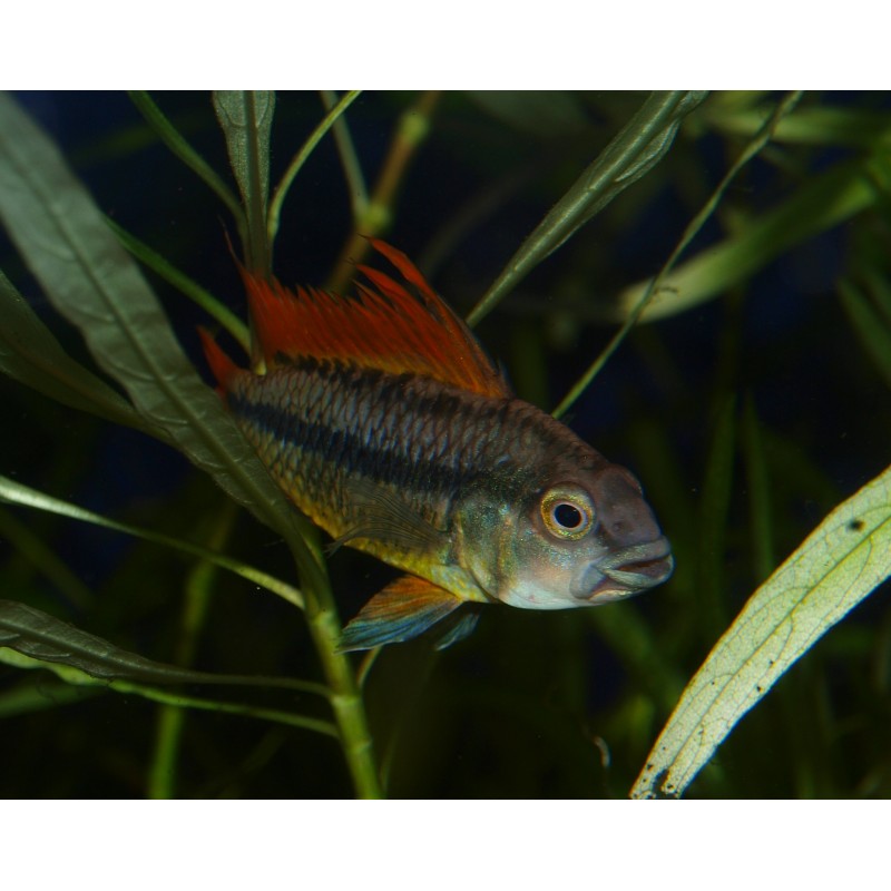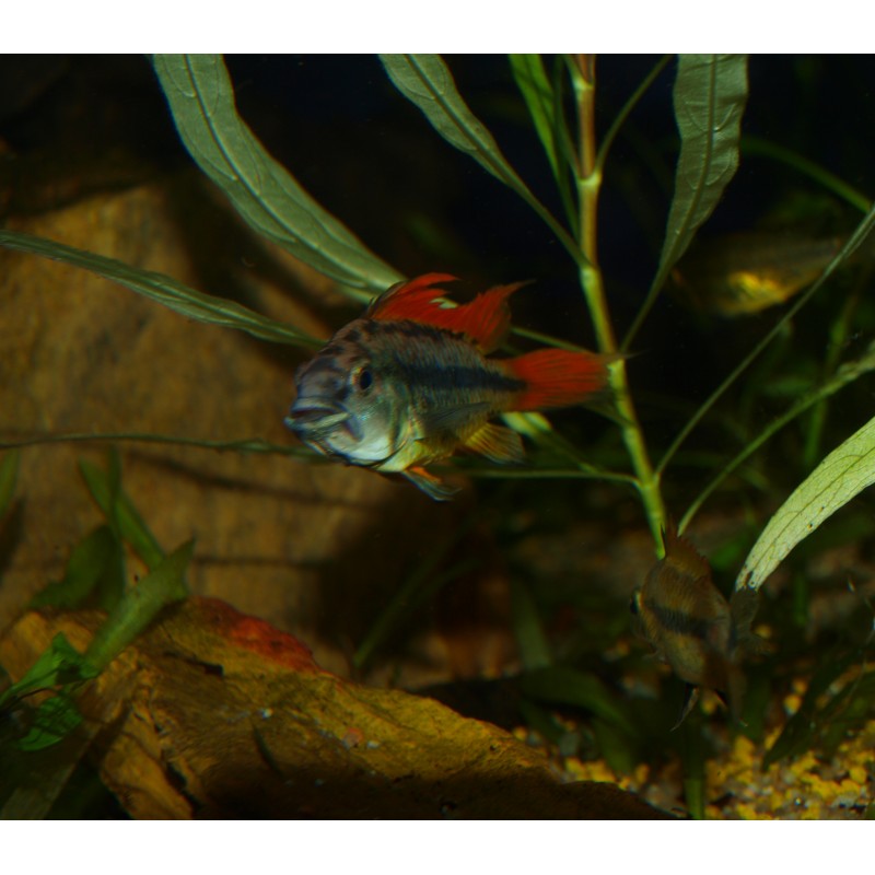 Comportement: Paisible. Les facteurs physico-chimique de l'eau tendent à influer sur le caractère territorial de l'espèce. Ainsi plus on se rapprochera des conditions idéales de frai (pH bas, Brassage lent, T° élevée), Plus l'agressivité sera marquée. Pour ces raisons je déconseille l'acclimatation et la maintenance en pH acide tant que la ou les femelles ne sont pas matures et gravides.
