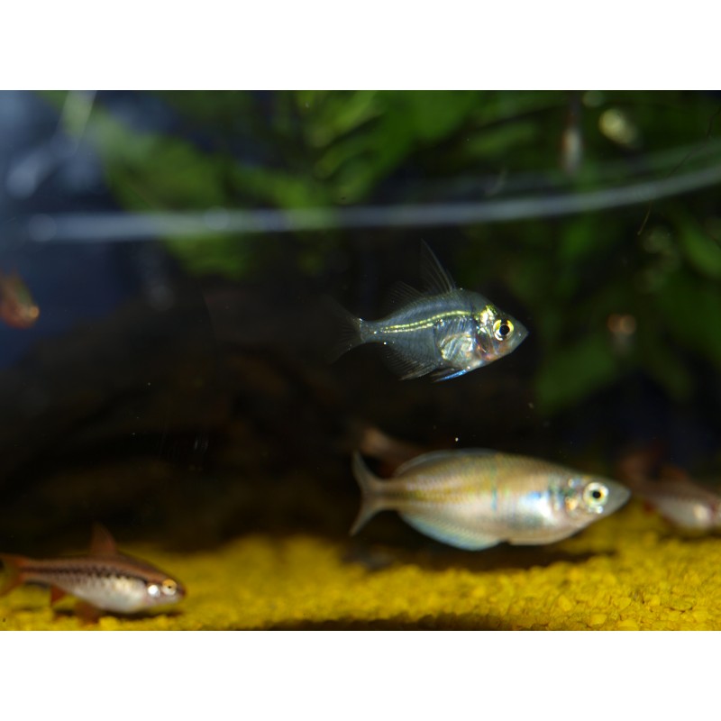 Notes: Autrefois connue sous le nom de Chanda ranga, cette espèce doit son nom à sa peau translucide qui laisse apparaître clairement sa structure osseuse et ses organes internes. Pendant de nombreuses années, elle a été artificiellement injectée de colorants lumineux dans des élevages piscicoles en Asie, puis vendue comme « poisson de verre peint » ou « poisson disco ». Cet acte odieux consiste à injecter le poisson à plusieurs reprises à l'aide d'une grosse aiguille, et la plupart des poissons ne survivent pas plus de quelques mois. Bien que ces poissons peints, ainsi que d'autres espèces, soient encore disponibles dans de nombreux pays, une campagne de longue haleine a permis de les faire quasiment disparaître des commerces.